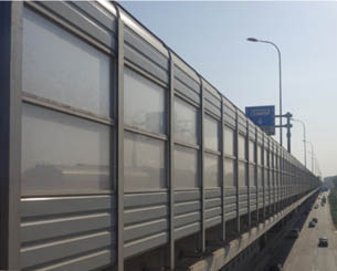 公路隔音墻主要由鋼結構立柱和吸隔聲屏板兩部分組成,立柱是聲屏障的主要受力構件,它通過螺栓或焊接固定在道路防撞墻或軌道邊的預埋鋼板上;吸隔聲板是主要的隔聲吸聲構件,它通過高強彈簧卡子將其固定在H型立柱槽內,形成公路隔音墻。
