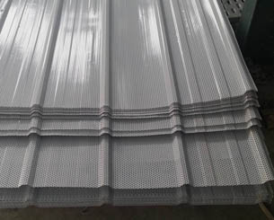 彩鋼吸音板采用優質的彩鋼板為原料,經過全自動數控沖床沖孔,然后輥壓成型。我公司可對彩鋼板表面加工覆膜,可更有效的保護板面不被劃傷。 彩鋼吸音板可成型寬度:900mm,840mm、910mm。(我們還可根據您的要求來訂做不同的瓦型),如果不壓型可成卷打孔。