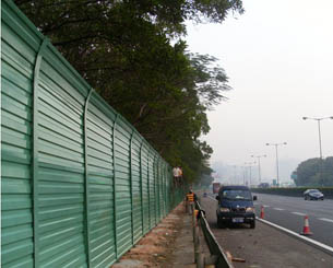 2、直平形公路聲屏障,整體形狀平直,而上部吸聲板呈孤形,可更有效地控制聲音通過(guò)屏體上部的繞射, 中間以連續(xù)的框架結(jié)構(gòu)為主體;